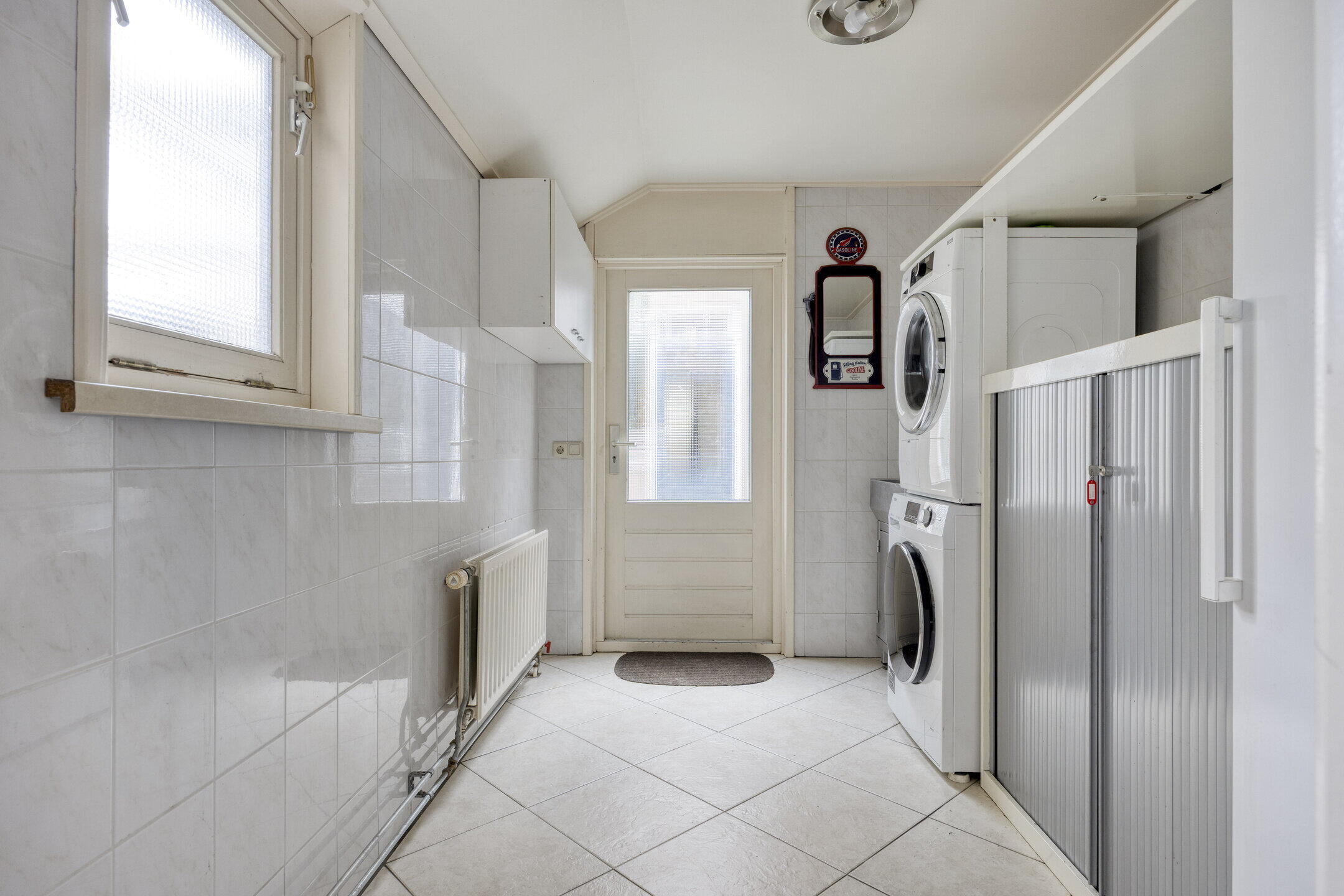 In de geheel betegelde en verwarmde berging bevinden zich de witgoedaansluitingen en een wasbak. Vanuit deze ruimte kom je in voormelde garage.